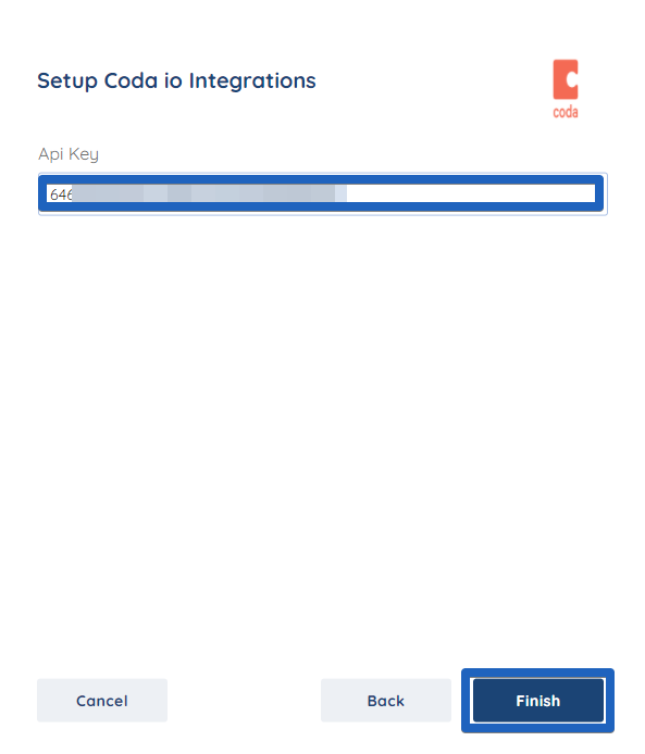 Enter the name of the integration in the search bar.Selecting the Coda.io Integration