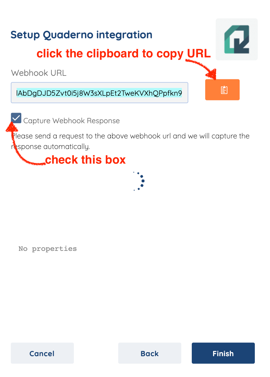 In the next window check the box for Capture Webhook Response and click the clipboard icon to copy the Webhook URL.