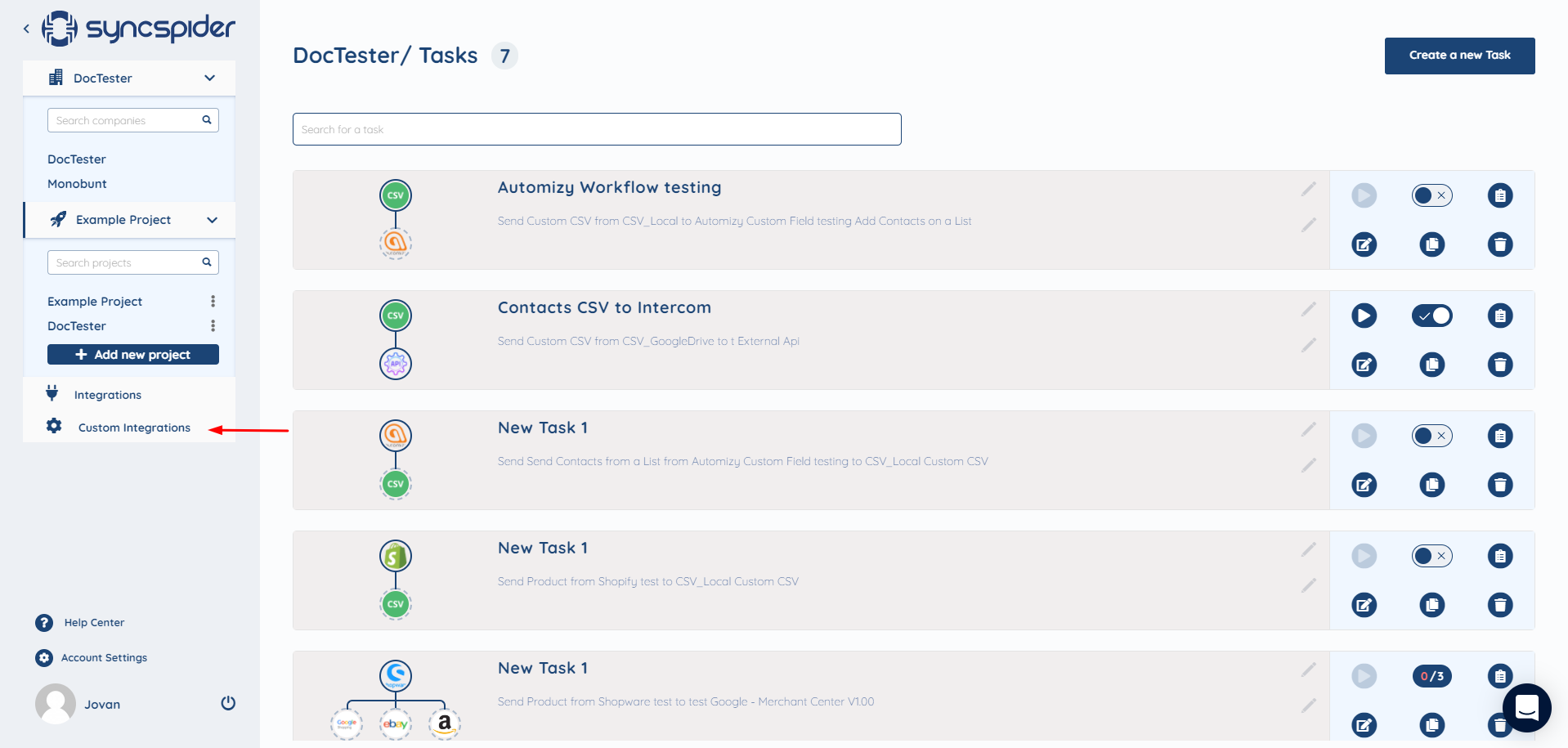 You can access our API documentation and prepare the data format and type SyncSpider expects.