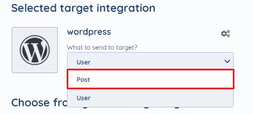 Next, we will focus on importing Posts to WordPress. Therefore we will select WordPress as a Target integration.