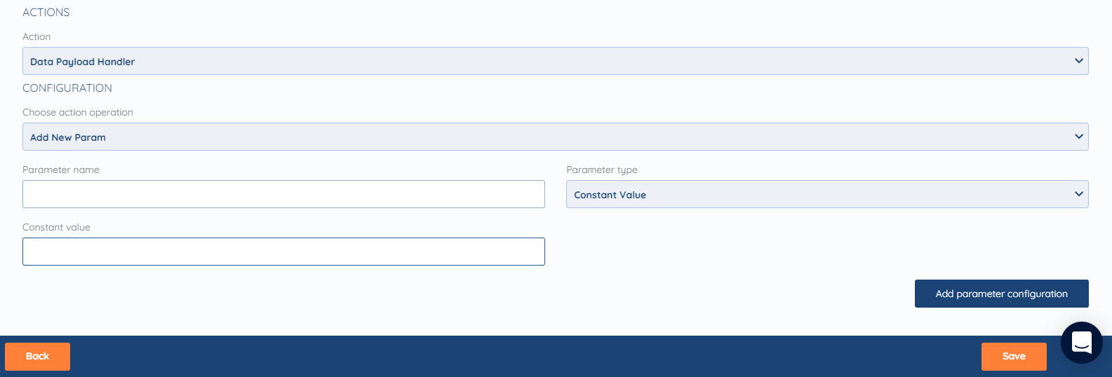 Data Payload Handler currently allows us only one action, that is to Add a New Parameter.