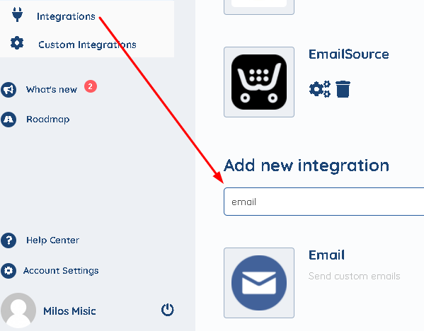 Select Email from our list of Integrations, or by typing email in the search bar: